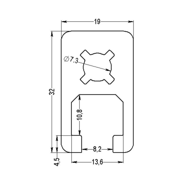 Mittayksikkö: m Weight/m: 1,001 Materiaali, väri: AL anodized silver 3D -tiedosto (step): 1.0013_19X32