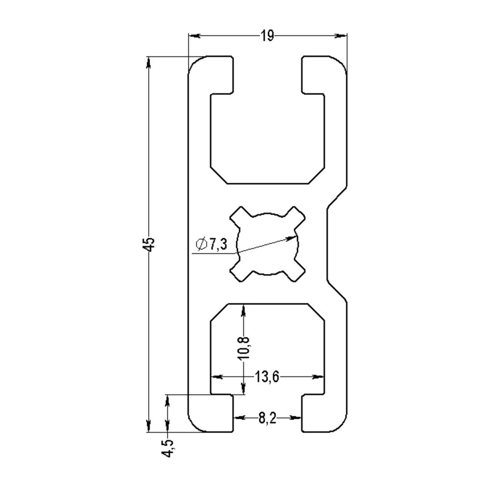 Mittayksikkö: m Weight/m: 1,113 Materiaali, väri: AL anodized silver 3D -tiedosto (step): 1.0017_19X45