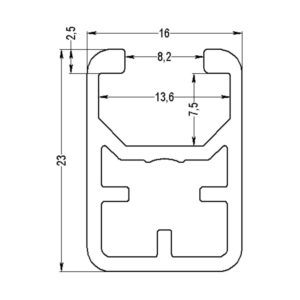Mittayksikkö: m Weight/m: 0,437 Materiaali, väri: AL anodized black 3D -tiedosto (step): 1.0103_23X16_musta