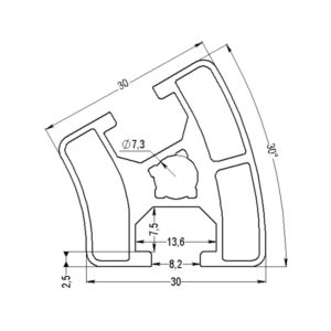 Mittayksikkö: m Weight/m: 0,733 Materiaali, väri: AL anodized silver 3D -tiedosto (step): 1.0008_30_R_30