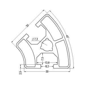 Mittayksikkö: m Weight/m: 0,703 Materiaali, väri: AL anodized silver 3D -tiedosto (step): 1.0009_30_R_45