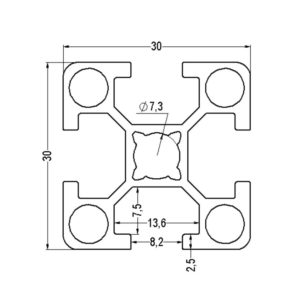 Products / 1.0 Aluminium Profiles / 30 Series / Aluminium profile 30X30