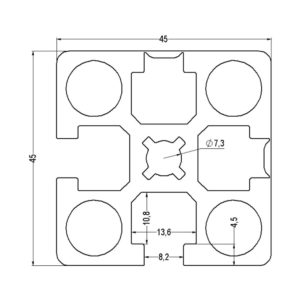 Mittayksikkö: m Weight/m: 2,211 Materiaali, väri: AL anodized black 3D -tiedosto (step): 1.0096_45X45_2SS_musta