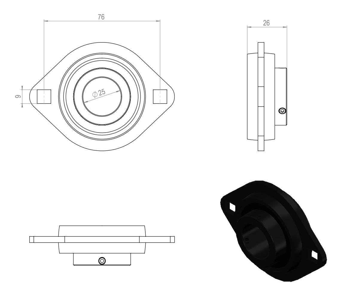 Mittayksikkö: kpl Materiaali, väri: AL steel 3D -tiedosto (step): 4.0029_Laakeri_SBPFL205_ZN