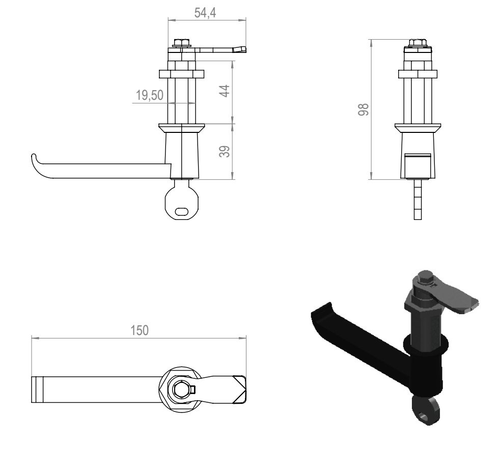 Unit: kpl Material, color: Cast aluminium black 3D-file (step): 1.4025_Kahva_32_lukolla_musta