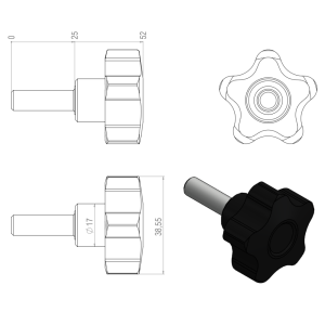 Unit: kpl Material, color: Plastic black 3D-file (step): 2.9049_Kiertonuppi_M8_L25_ulkokierteellä