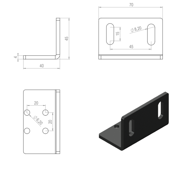 Fixing plate for Locking Unit 25. Allows locking unit to be attached to a profile.