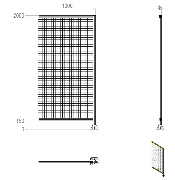 Unit: kpl Material, color: AL steel 3D-file (step): 5.0006-Laitesuojan-jatkoelementti-1000X2000-mm-hopea