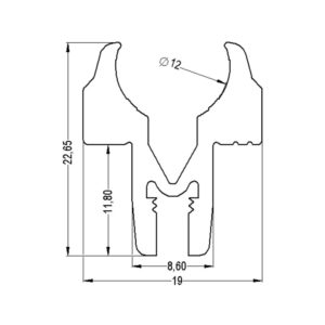Products / 1.0 Aluminium Profiles / 45 Series / Special profiles / Shaft Supporting Profile 12 Black
