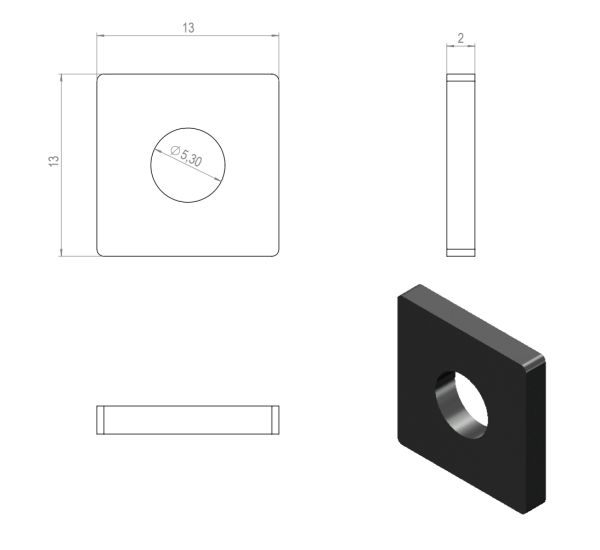 Unit: kpl Material, color: Zinc plated steel 3D-file (step): 1.2027_Aluslevy_M5