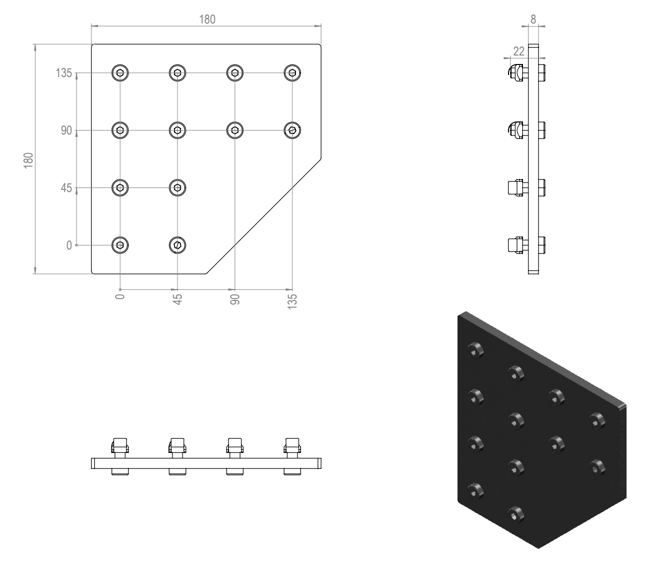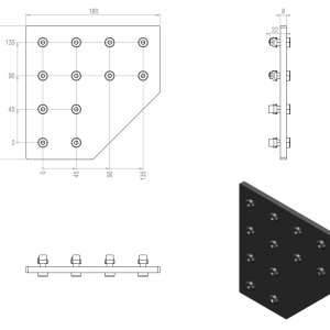 - Kulmakiinnityslevy 90X90 -profiilien kulmittain kiinnitykseen