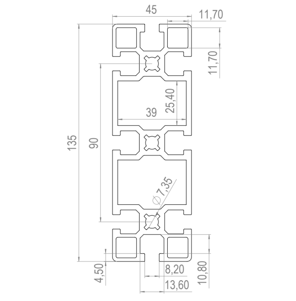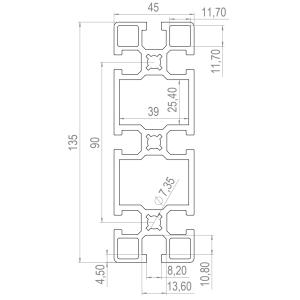 Alumiiniprofiili 45X135 L 6m musta