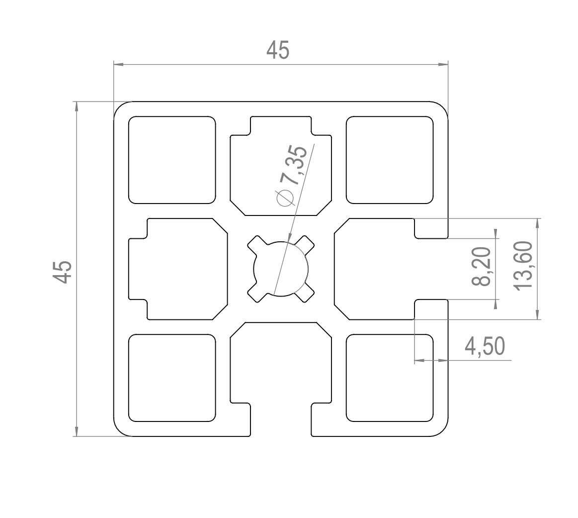 Alumiiniprofiili 45X45 L 2SS vahvist.