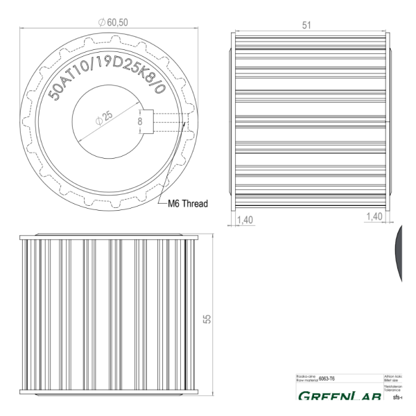 Hammashihnapyörä 50AT10/19D25K8/0
