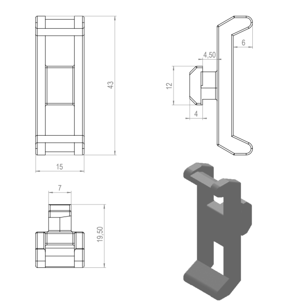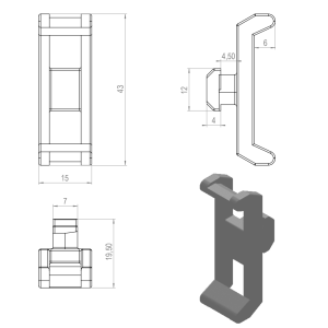 - Leveä kaapelikiinnike 45- sarjan profiiliuraan