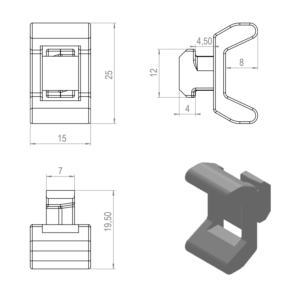 - Kaapelikiinnike 45 -sarjan profiiliuraan