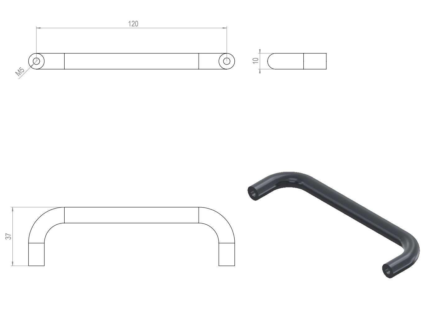 Yksikkö: kpl Materiaali, väri: AL anodisoitu hopea 3D -tiedosto (step): 1.4014_Kahva_AL