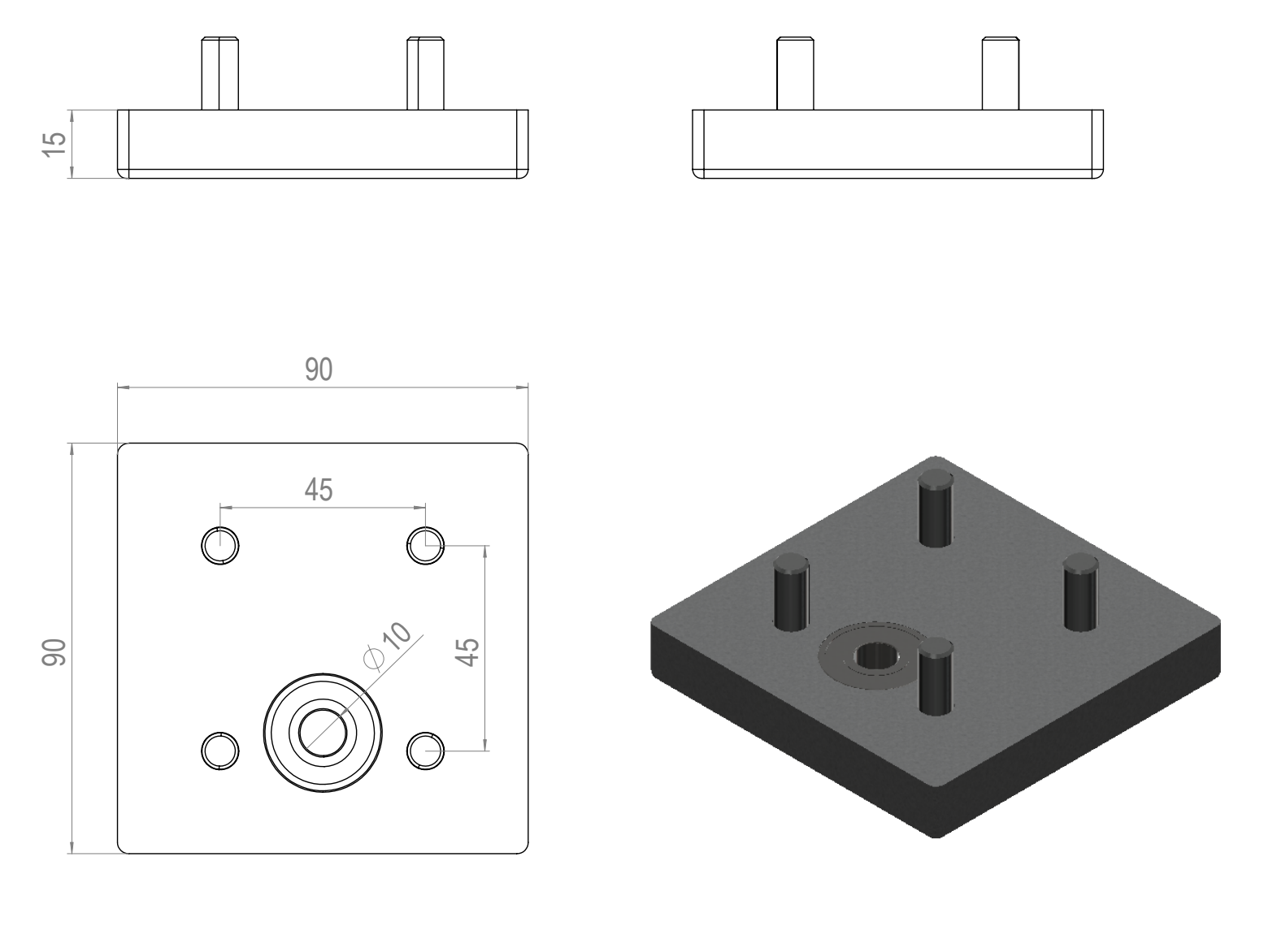 Käsipyöräsäätöyksikön laakerilevy 90X90 reiällä