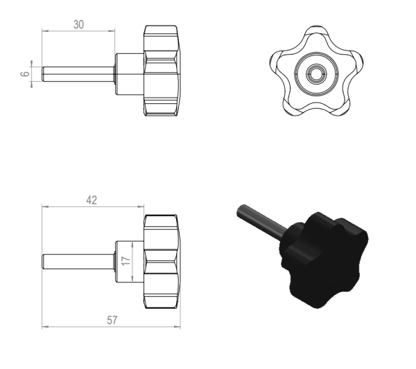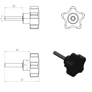 Tuotteet / 1.4 Saranat, kahvat ja lukot / Kiertonupit / Kiertonuppi M6 L30 ulkokierteellä