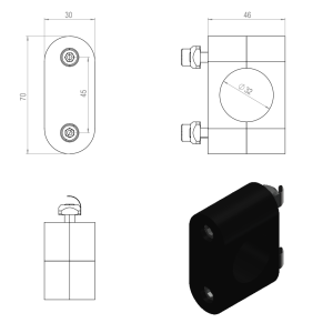 Yksikkö: kpl Materiaali, väri: ABS harmaa 3D -tiedosto (step): 1.3048_Kiinnike_kahvaprofiilille_32