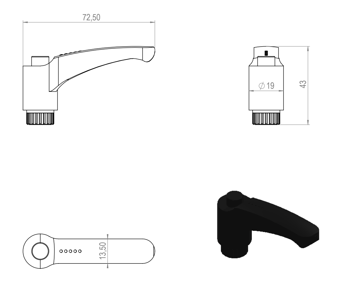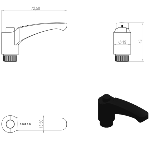 Yksikkö: kpl Materiaali, väri: Muovi musta 3D -tiedosto (step): 2.9007_Kiinnitysvipu_M8_sisäkierteellä