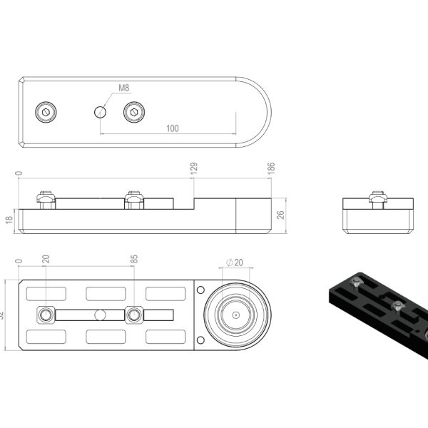 Yksikkö: kpl Materiaali, väri: AL, pulverimaalattu harmaa Tekniset tiedot pdf: 1.8120 Kuljetinhihnalaakeri 45CB20 C 3D -tiedosto (step): 1.8120_Kuljetinhihnalaakeri_45CB20_C