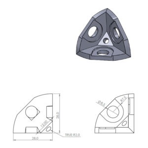 Kiinnityskulma 30R90 profiilin nurkkaan. Mukaan tulee 3kpl M8x20 kuusiokoloruuvia sekä päätysuoja kulmalle.