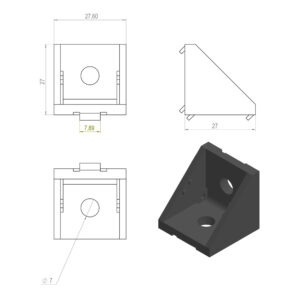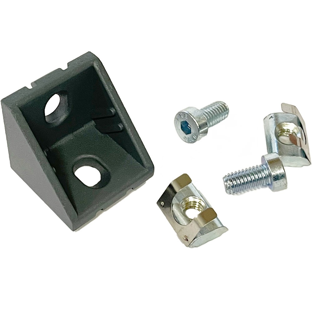 Kulmassa uran suuntaan ohjaavat nystyrät, jotka voi halutessaan myös poistaa. Kulman mukana toimitetaan 2kpl M6x12 kuusiokoloruuvia ja 2kpl neliömutteri 30 M6 kiinnityslevyllä