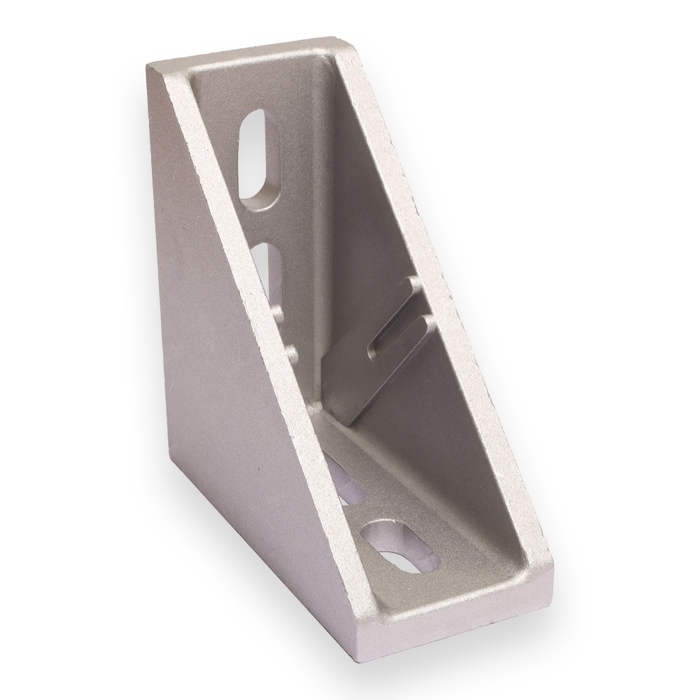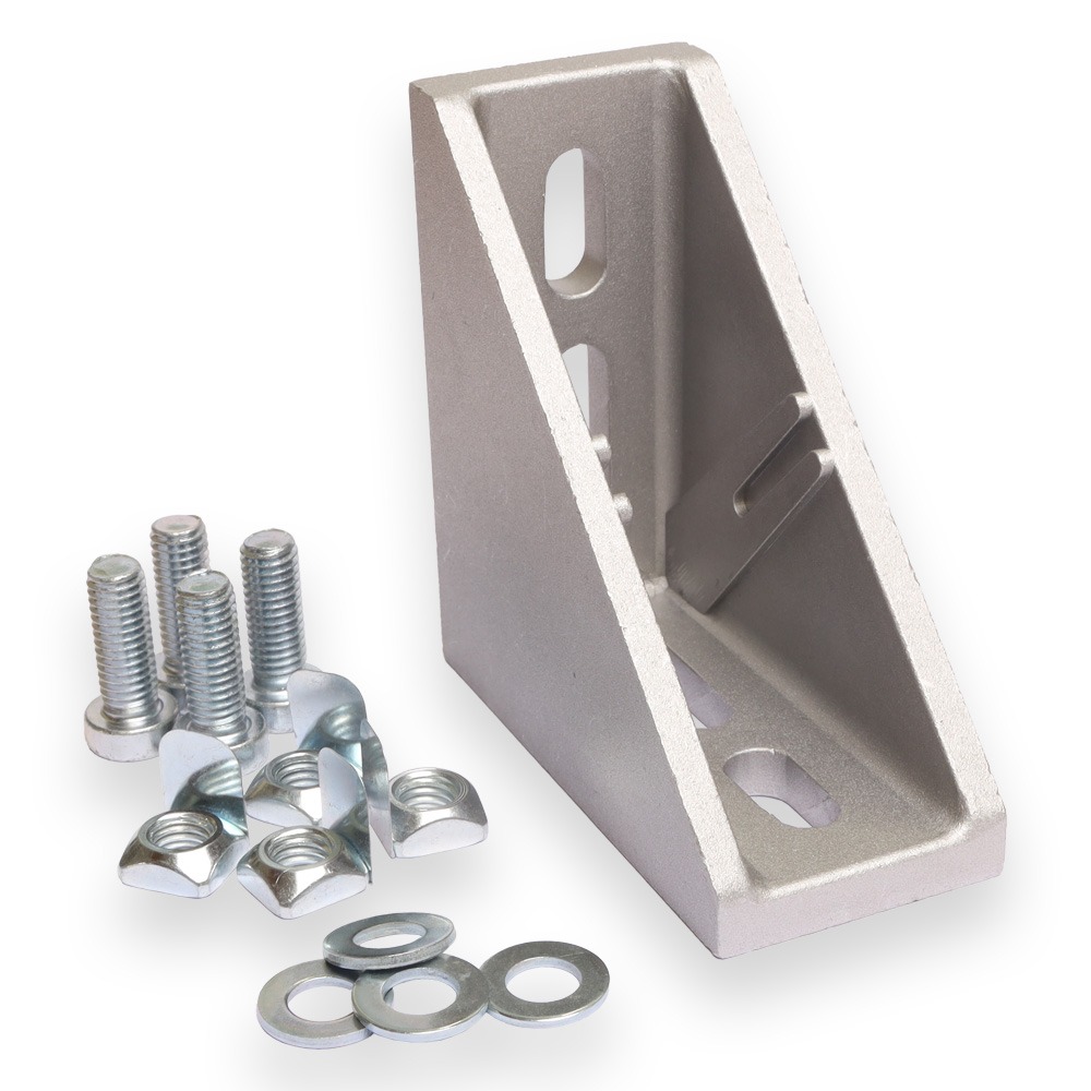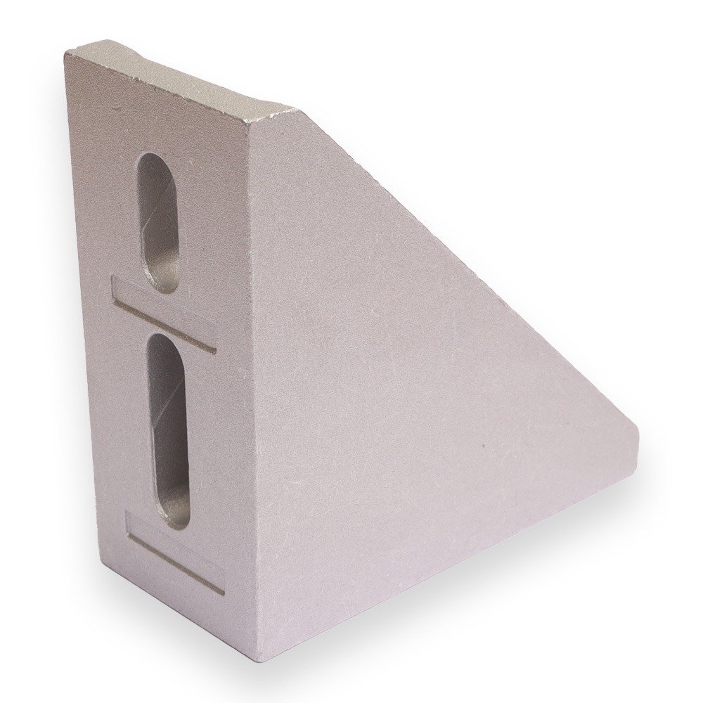 Pinnoittamaton ESD kiinnityskulma 45 -sarjan profiileille. Mukana tulee 4kpl M8 x 22 kuusiokoloruuvi, 4kpl M8 aluslevy ja 4kpl Neliömutteri M8 kiinnityslevyllä ESD. Kulmalle saatavissa myös päätysuoja.