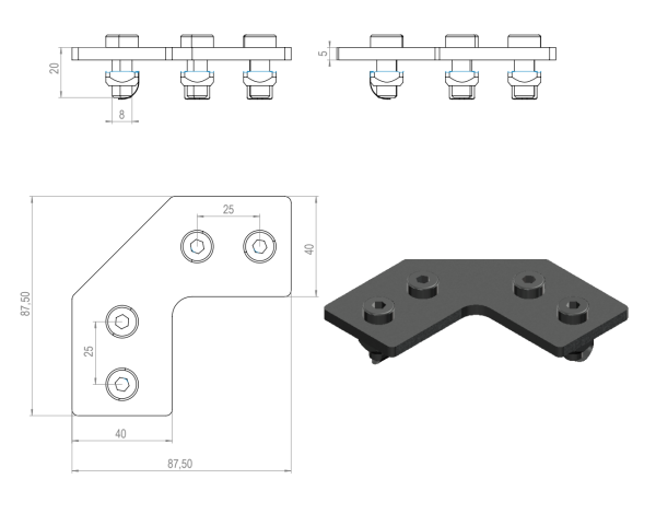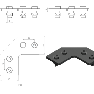 • Kulmalevy 40- tai 45-sarjan profiilien kulmikkain yhdistämiseen