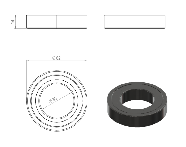Yksikkö: kpl Materiaali, väri: Teräs 3D -tiedosto (step): 4.0003_Laakeri_6007_ZZ_LSB