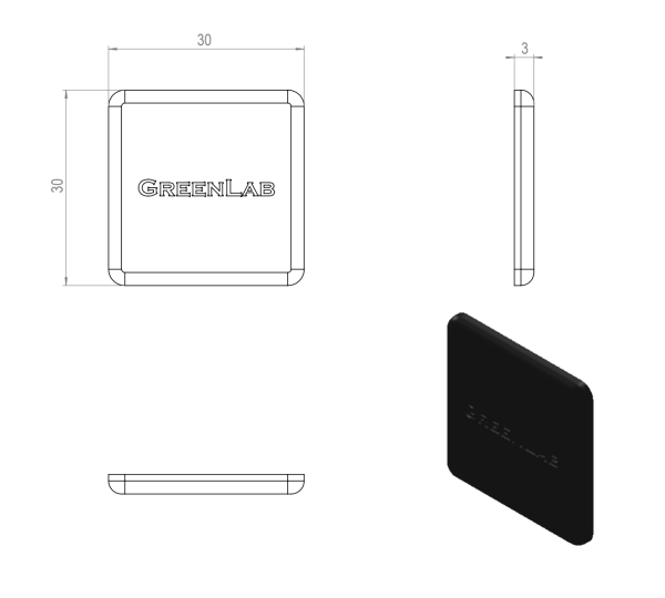 Yksikkö: kpl Materiaali, väri: ABS musta 3D -tiedosto (step): 1.1054-Paatysuoja-30X30-musta