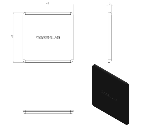 Yksikkö: kpl Materiaali, väri: ABS musta 3D -tiedosto (step): 1.1059-Paatysuoja-45X45-musta