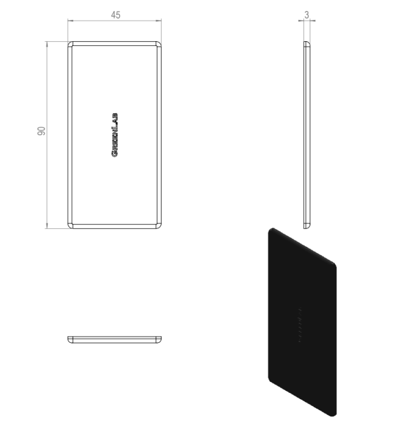 Yksikkö: kpl Materiaali, väri: ABS musta 3D -tiedosto (step): 1.1061-Paatysuoja-45X90-musta