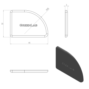 Yksikkö: kpl Materiaali, väri: ABS harmaa 3D -tiedosto (step): 1.1031-Paatysuoja-kahvaprofiilille-Vasen
