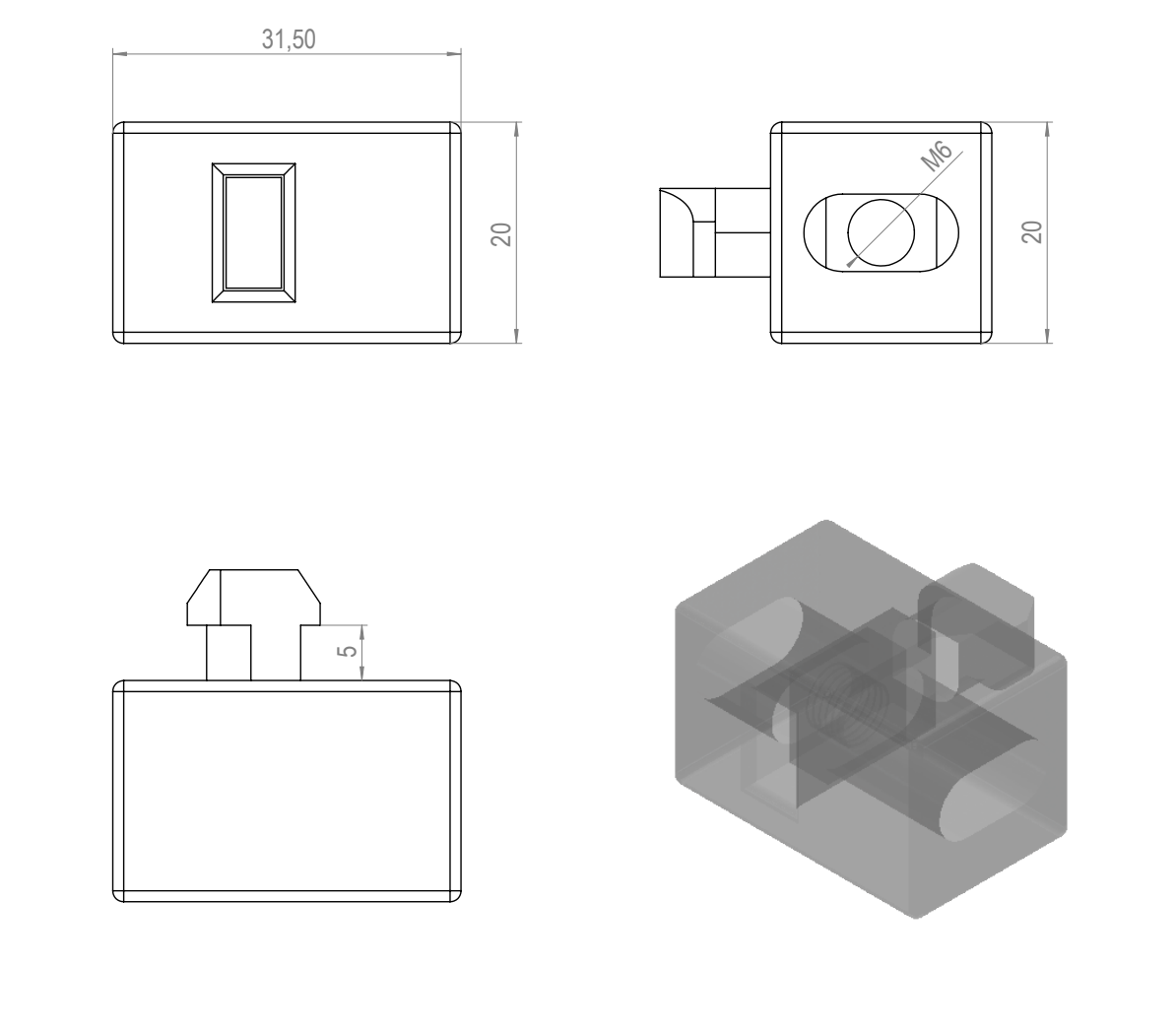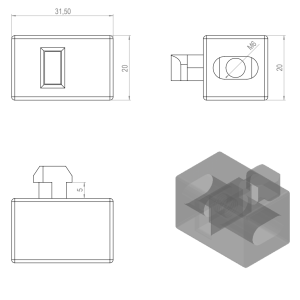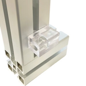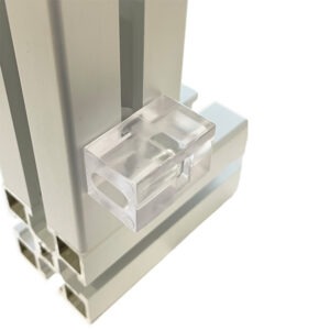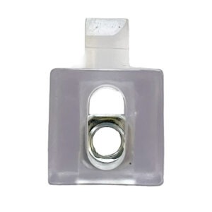 Paneelikiinnike 45 -sarjan profiileille. Kiinnikkeessä kelluva M6 mutteri. Kiinnikkeiden avulla on helppo asentaa suojalevyt profiileihin. Kiinnikettä kääntämällä voit valita upotussyvyydeksi joko 4mm tai 10mm.