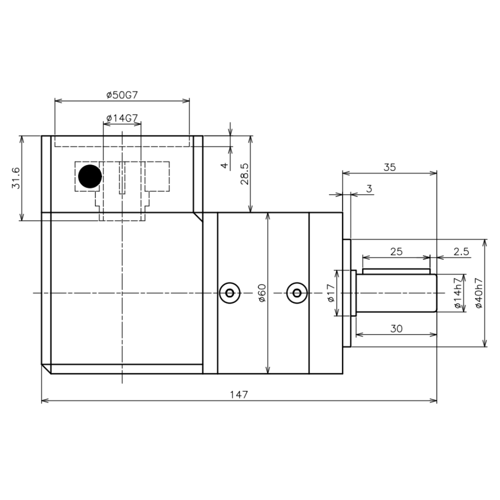 Kulmaplaneettavaihde WPL60-10-P2S2OP2-14×30-50-70M4