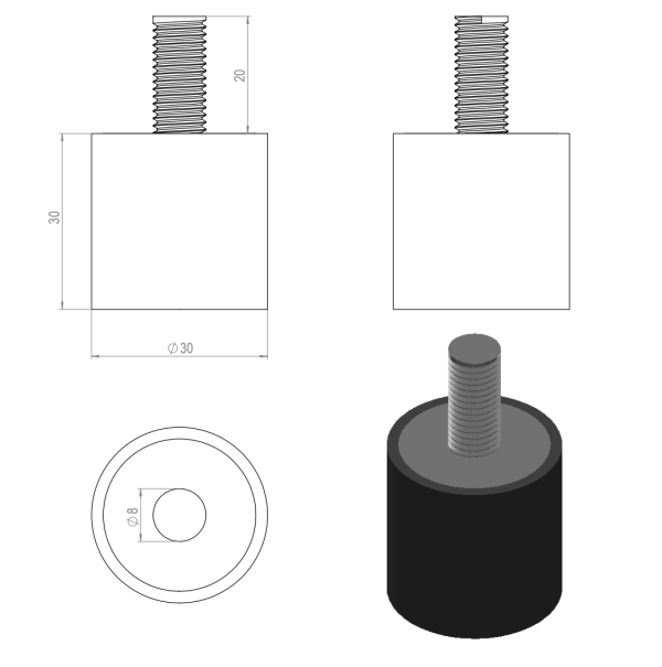 Yksikkö: kpl Materiaali, väri: NBR musta 3D -tiedosto (step): 1.4041_pysaytin_30_M8