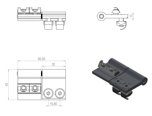 Sarana 30-sarjan profiilien ja 45-sarjan profiilien välille. Sisältää 2kpl Uppokantaruuvi M6X12 ja 2kpl Neliömutteri 30 M6 kiinnityslevyllä sekä 2kpl Uppokantaruuvi M6X16 ja 2kpl Neliömutteri M6 kiinnityslevyllä