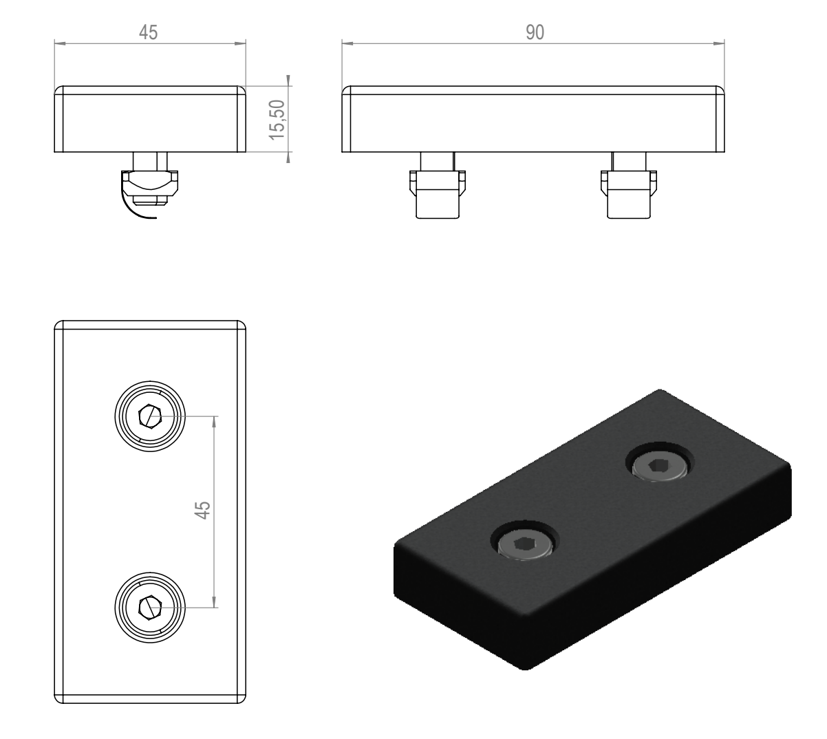 Sisältää 2kpl M8x22 kuusiokoloruuvia sekä 2kpl neliömutteri M8 kiinnityslevyllä